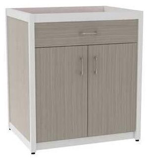 Along with being aesthetically gratifying, Essentials was designed to be easily cleaned, offering finishes that are durable and will hold up to today’s stringent cleaners. Essentials offers several work surfaces options such as rigid thermofoil and solid surfaces which are available with sealed edges for cleaning ease, also available in our bactericidal surface which is durable and comes with a hygienic finish that inhibits the growth of bacteria and germs. All Essentials finishes are applicable to today’s health facilities stringent house keeping requirements. Most importantly, cabinetry clearance off the floor provides accessible cleaning without damage to the cabinetry.